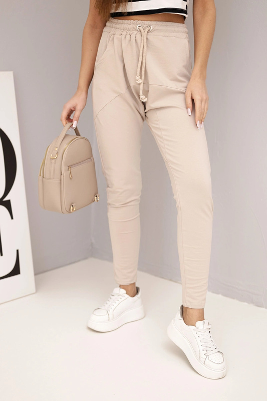 Dámské béžové cargo kalhoty s kapsami a řetízkem