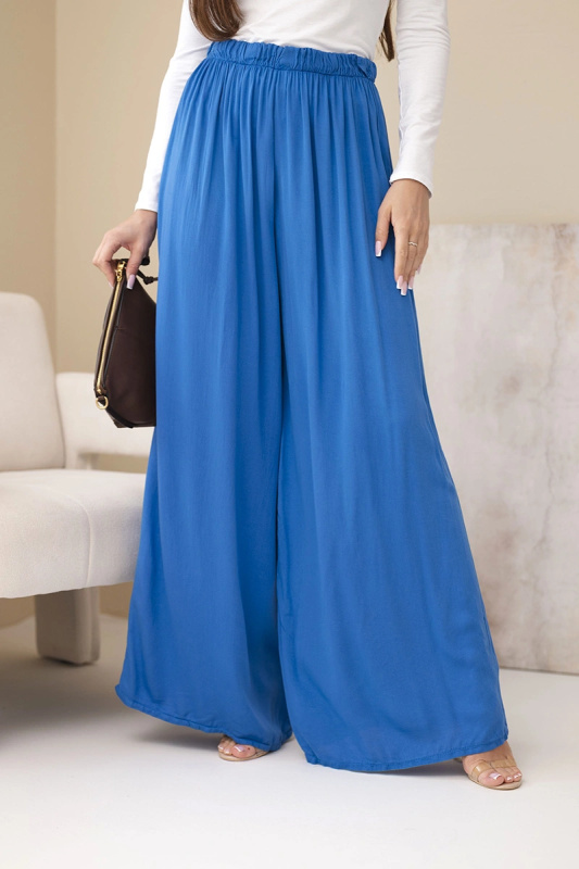 Dámské široké viskózové kalhoty s elastickým pasem