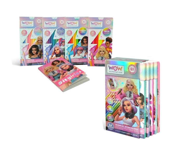 Sada psacích potřeb – pastelové, klasické, neonové a metalické pastelky + sešit
