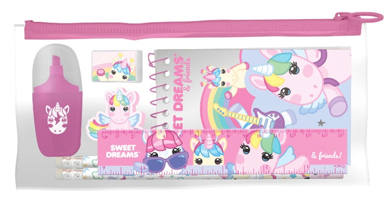 Psaní set v průhledném pouzdře s motivem jednorožce