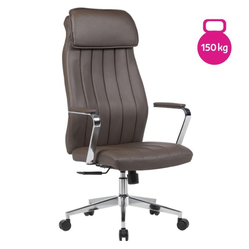 Kancelářské křeslo, hnědá ekokůže/stříbrná, nosnost 150 kg, GREKO