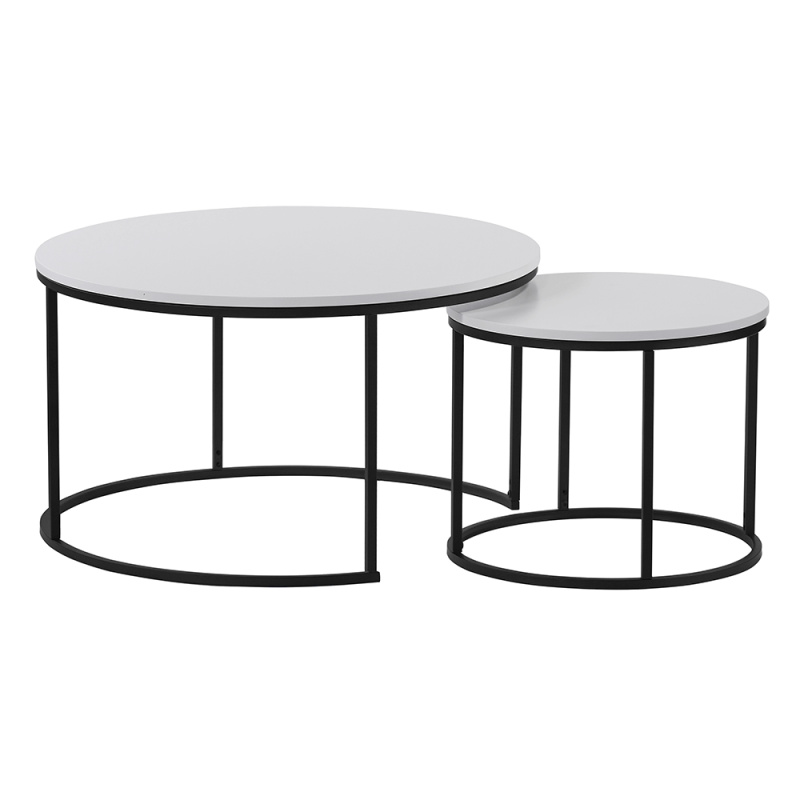 Konferenční stolky, set 2 ks, bílá/černá, IKLIN P11, poškozené zboží