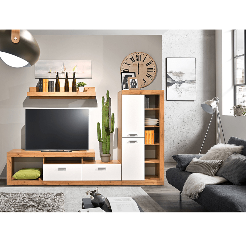 Obývací stěna, dub wotan/bílá, FIJI P5, poškozené zboží