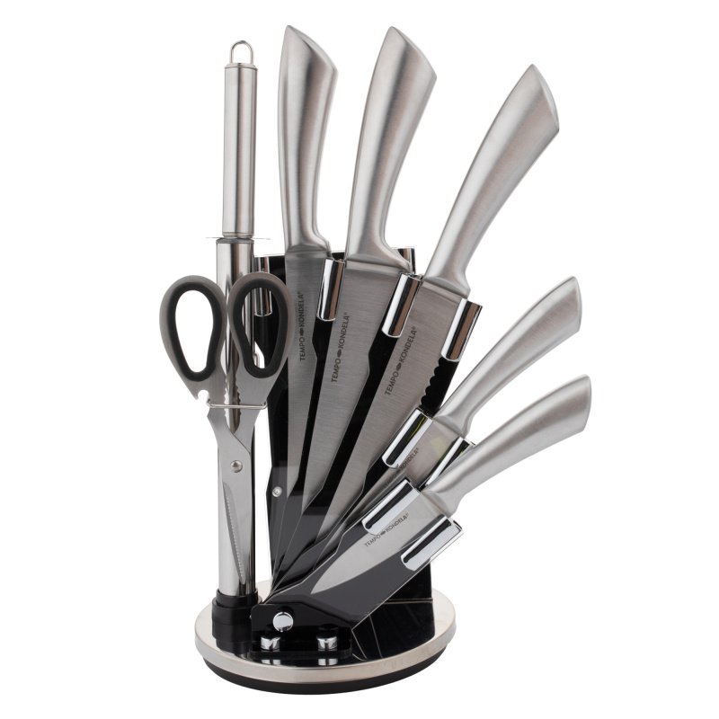 TEMPO-KONDELA JAVED, sada nožů, set 8 ks, ve stojanu, stříbrná