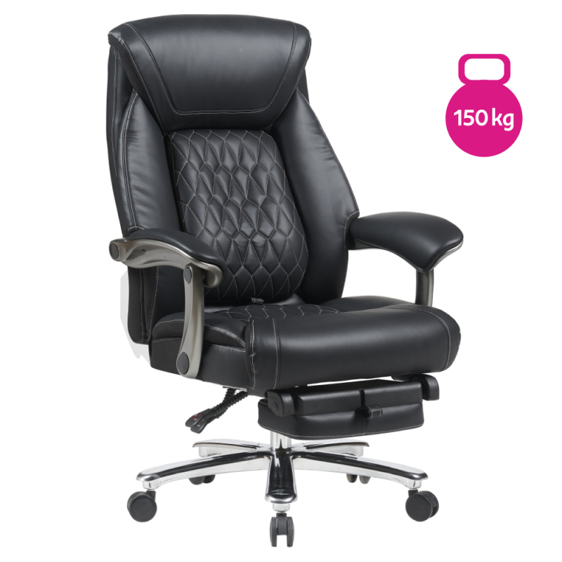 Kancelářské křeslo, černá ekokůže/chrom, nosnost 150 kg, URIEN