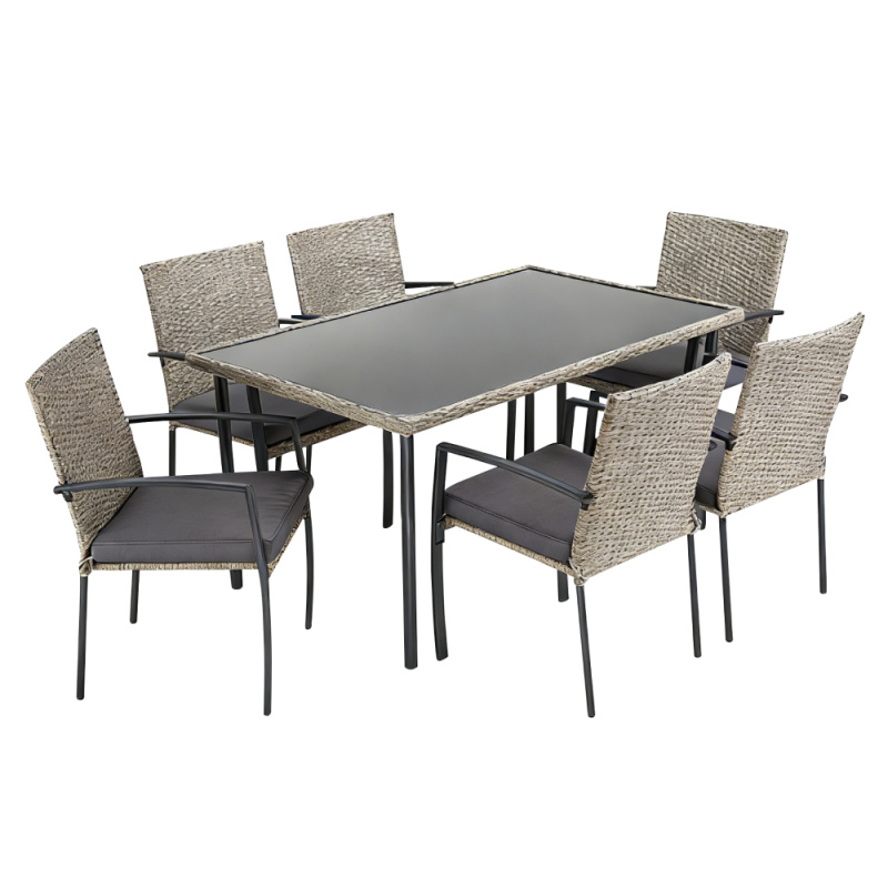 Zahradní 7-dílný ratanový set, šedá, KEON