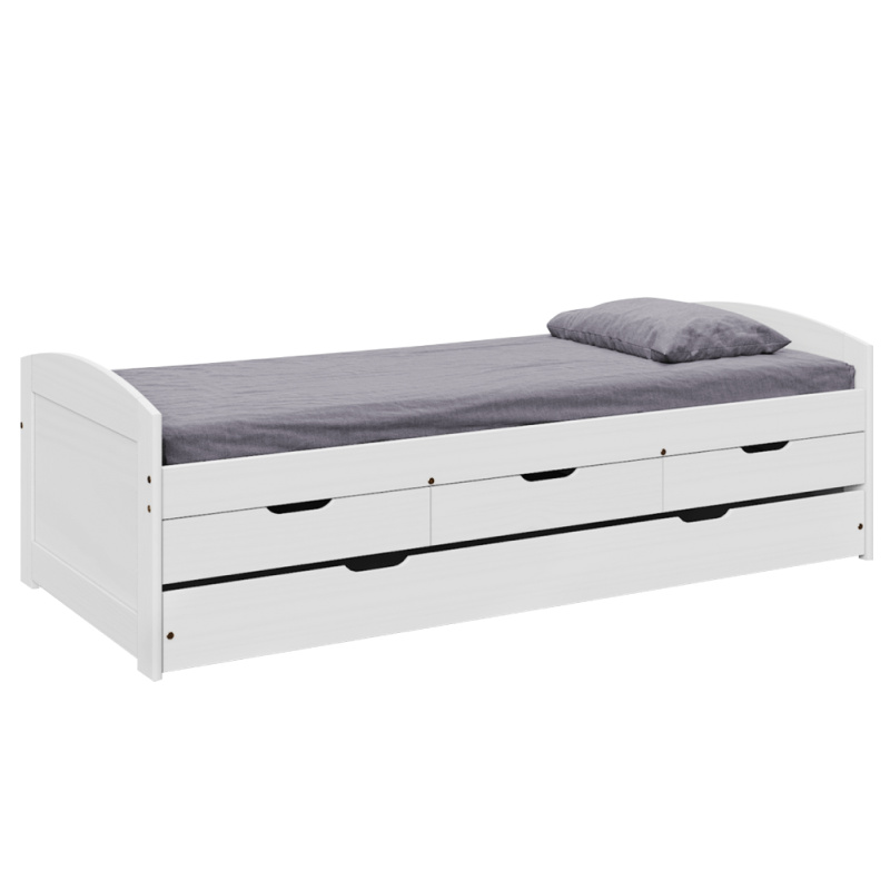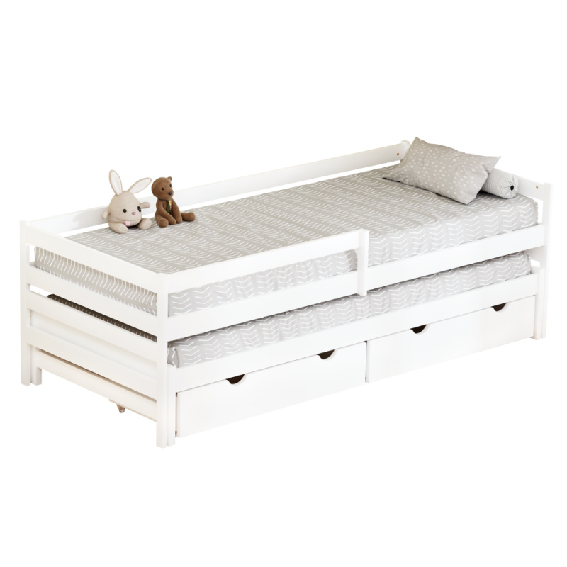 Postel s přistýlkou a úložným prostorem, 90x200, bílá, ELARA