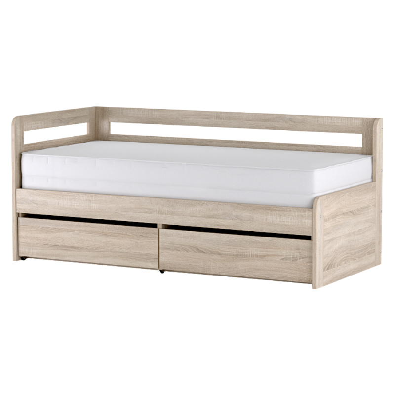 Postel s úložným prostorem, 90x200, dub/bílá, JUNA