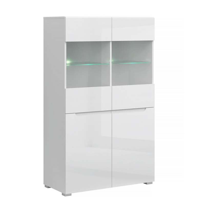 Vitrína 2D2W, bílá/bílý extra vysoký lesk HG, JOLK P1, poškozené zboží