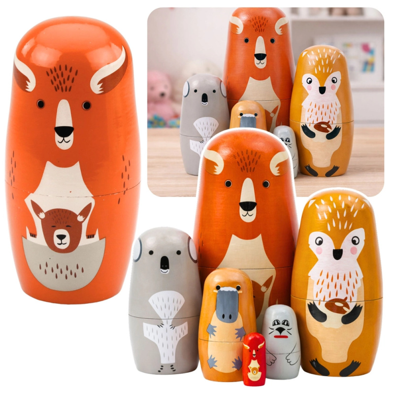 Dřevěná matryjoška – lesní zvířátka, sada 6 ks