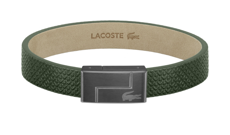 Lacoste Zelený kožený náramek Monogram Leather 2040186 17,5 cm