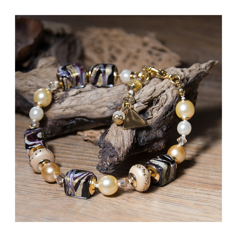 Lampglas Tajemný náramek Mystery s perlami Lampglas s 24karátovým zlatem BP18