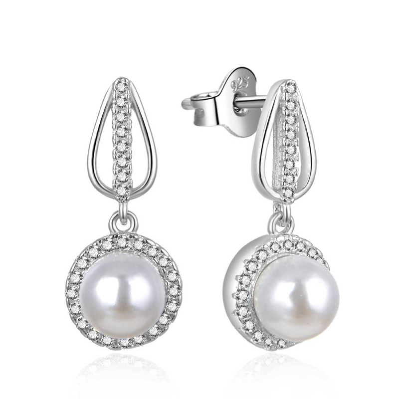 MOISS Nádherné stříbrné náušnice s perlami a zirkony E0003120