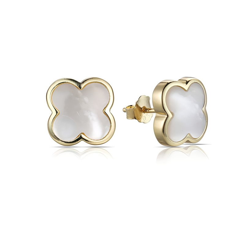 MOISS Pozlacené náušnice s perletí Čtyřlístek E0002804