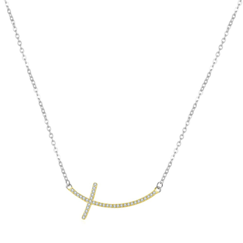 MOISS Jemný bicolor náhrdelník s kubickými zirkony Křízek N0000334