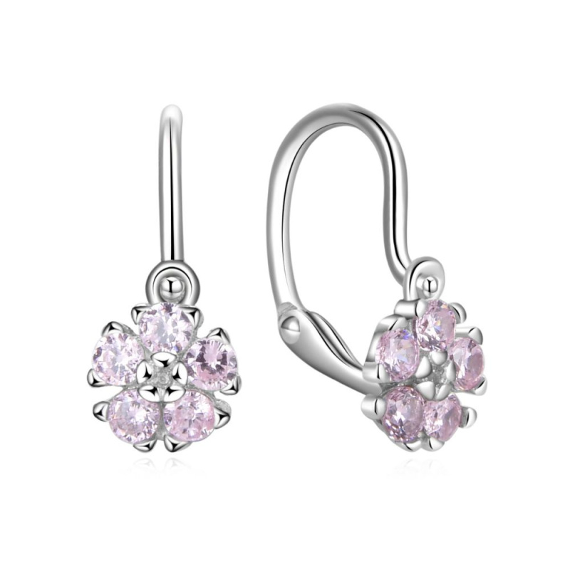 MOISS Stříbrné dětské náušnice Květina s růžovými zirkony E0000635