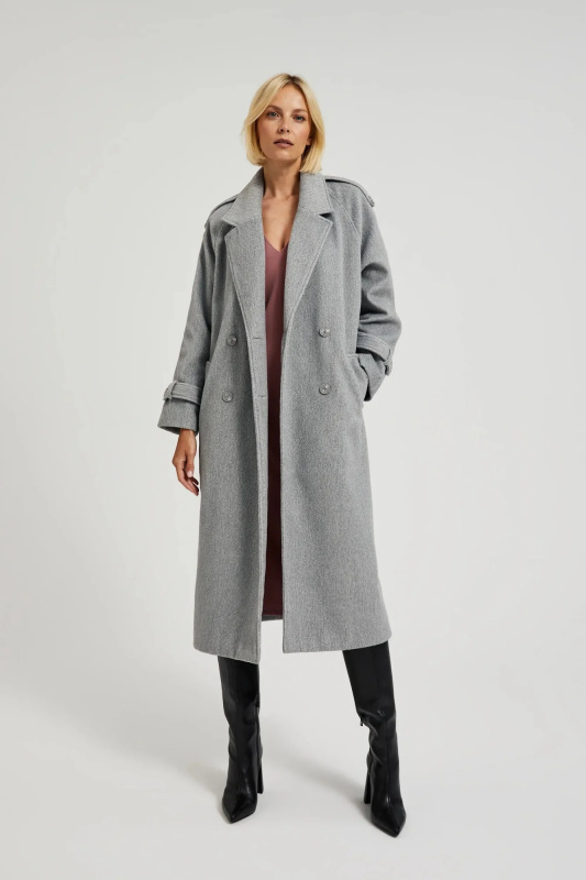 Dámský oversize kabát s páskem MOODO - šedý Velikost: L