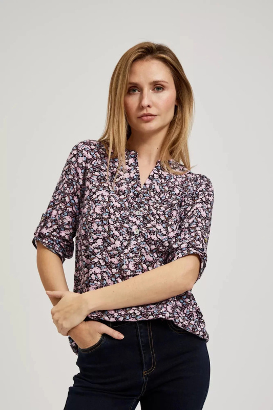 Dámská halenka MOODO - tmavě modrá, vzor květiny Velikost: 46