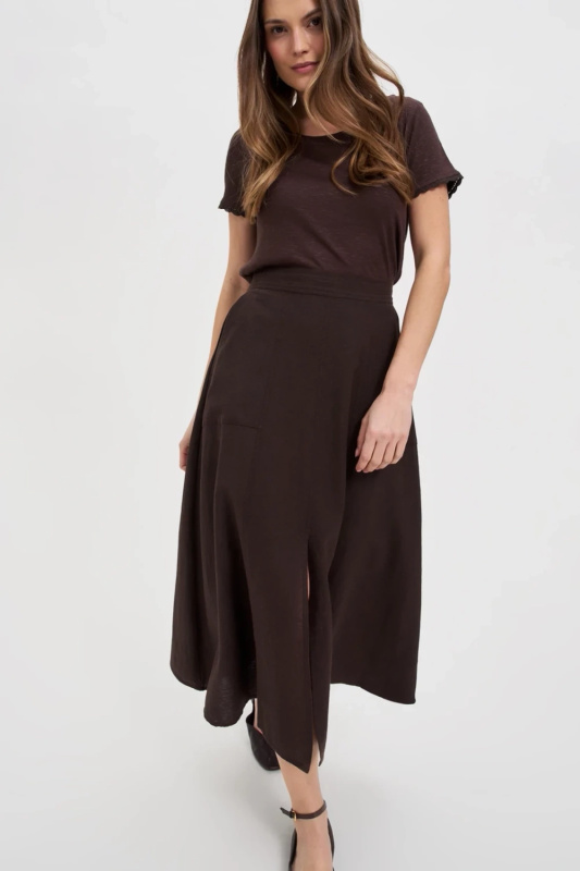 Marisse Brown Skirt With A Slit