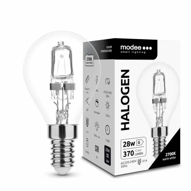 Modee halogenová žárovka Mini Globe G45 28 W E14, 370 lm, teplá bílá