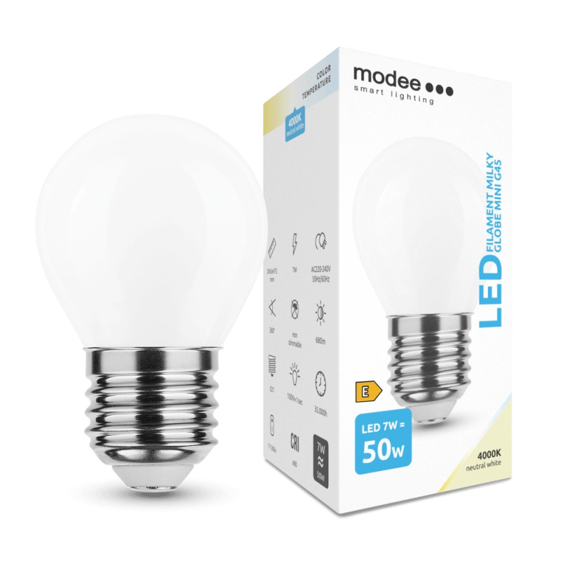 LED filamentová žárovka Modee Milky Globe Mini E27 7 W neutrální bílá