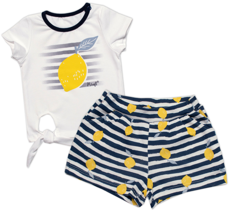 Dívčí triko+kraťasy 2D sada, Citrónky, , bílá/modrá, vel. 80