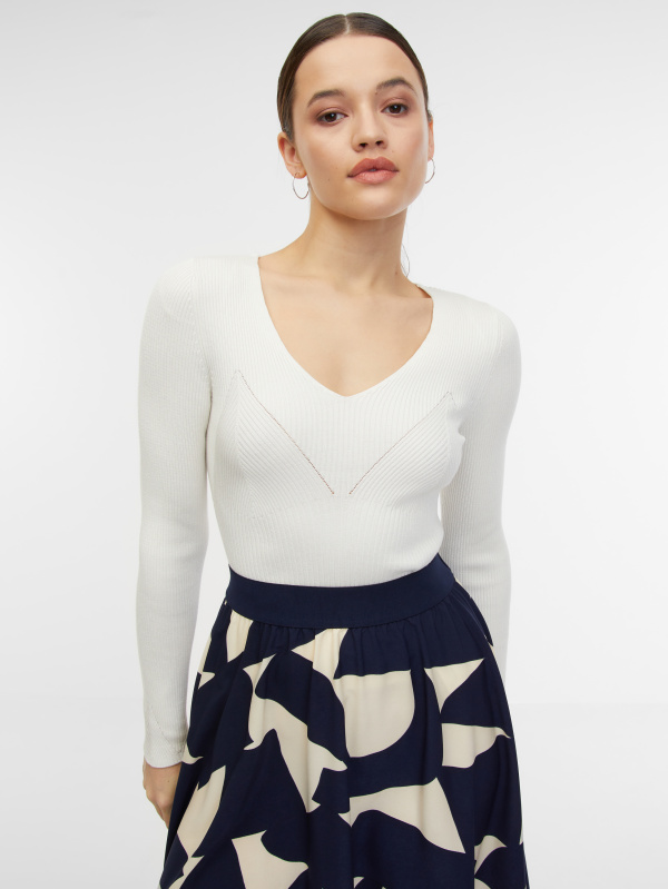 Orsay Bílý dámský žebrovaný svetr - Dámské