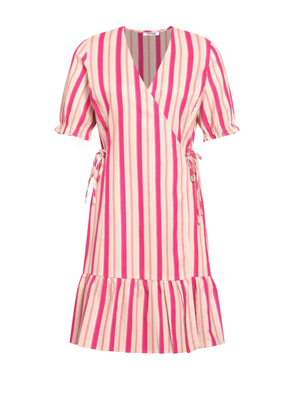Růžové pruhované zavinovací lněné šaty ORSAY - Dámské