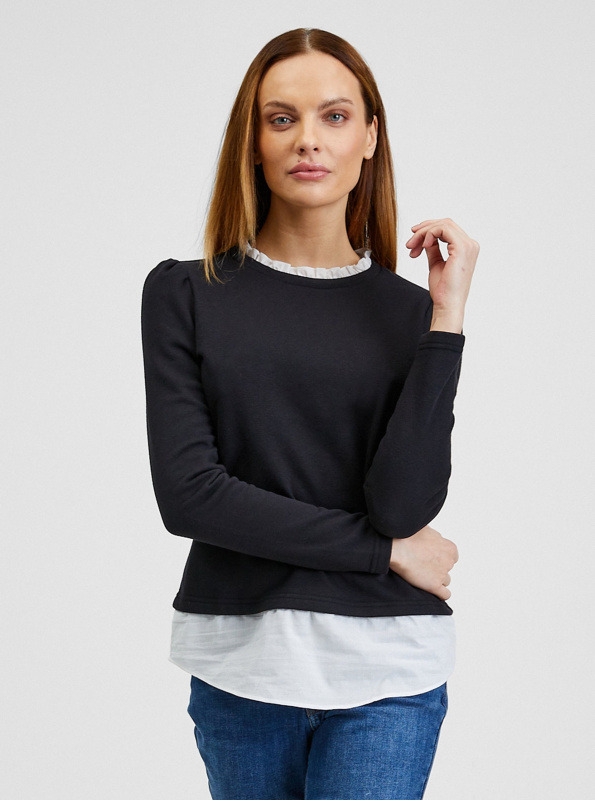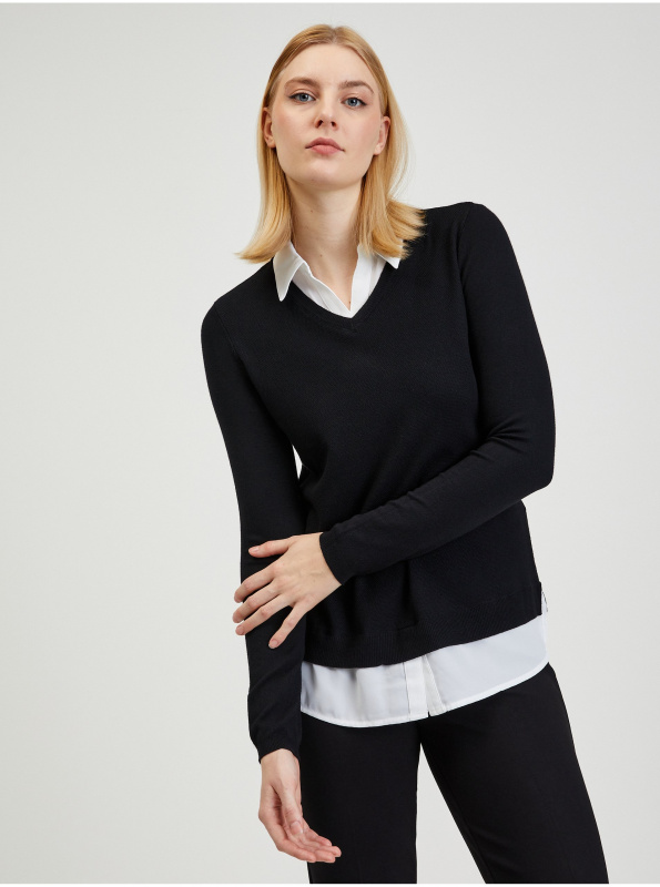 Orsay Černý dámský svetr s košilovou vsadkou - Dámské