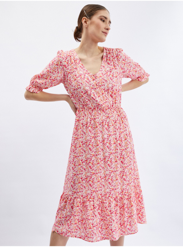 Orsay Oranžovo-růžové dámské květované šaty - Dámské