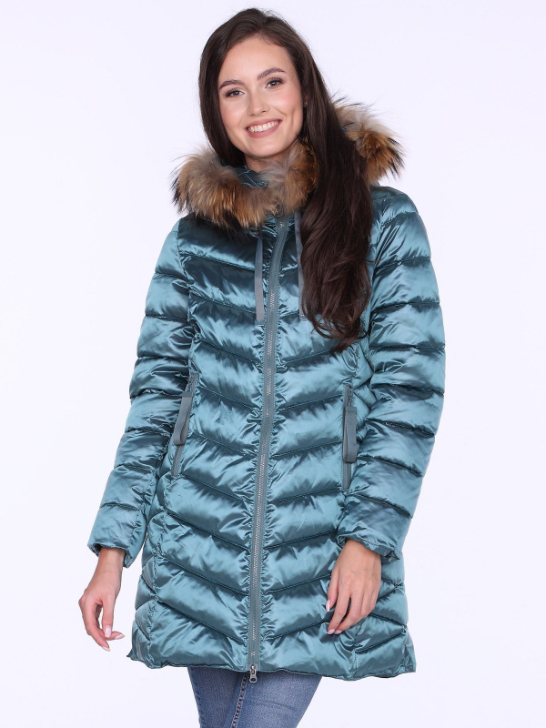 PERSO Woman's Quilted women's winter jacket with real fur on the hood