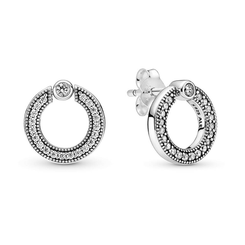 Pandora Kruhové náušnice s krystaly 3v1 Pandora logo 299486C01