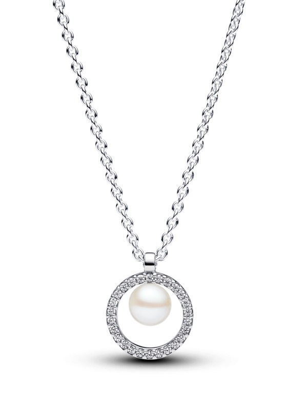 Pandora Stříbrný náhrdelník s Pavé a pravou perlou Timeless 393165C01-45