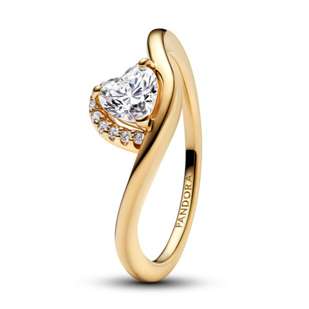 Pandora Romantický pozlacený prsten Zvlněné srdce Shine Timeless 163660C01 50 mm