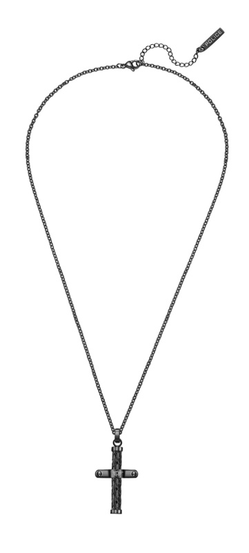 Police Nadčasový černý náhrdelník s křížkem Crossed PEAGN0032403