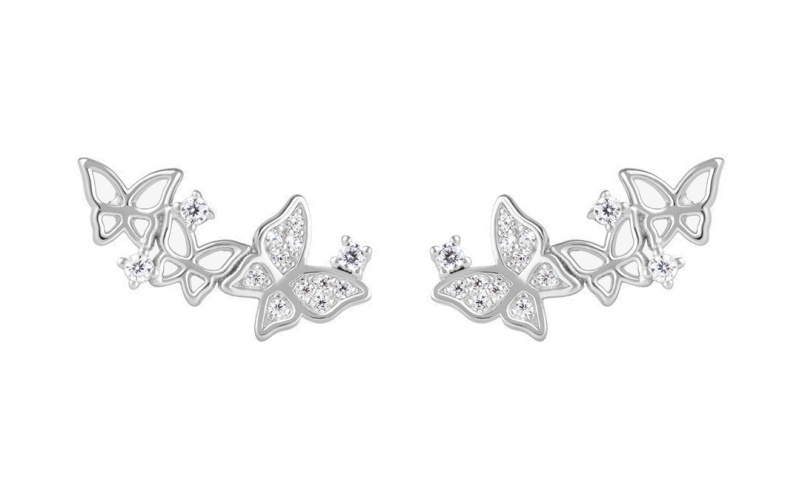 Preciosa Podélné stříbrné náušnice s motýlky Butterfly Waltz Candy 5399 00