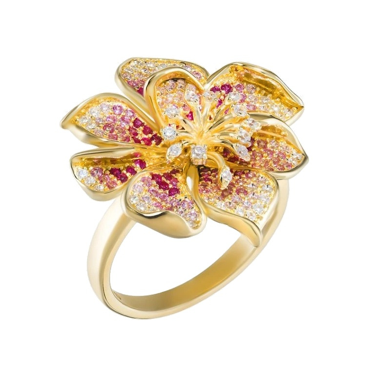 Preciosa Pozlacený prsten Rozkvetlý květ Mirage Royal Lagoon 5448Y69 53 mm