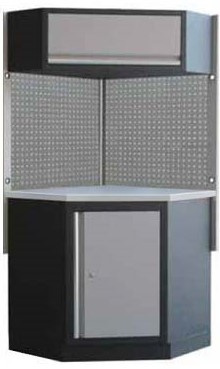 Rohová sestava dílenského nábytku Procarosa PROFI XS Pracovní deska: nerezová