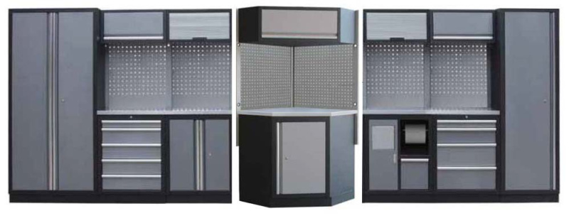 Sestava dílenského nábytku Procarosa PROFI L-III Pracovní deska: nerezová