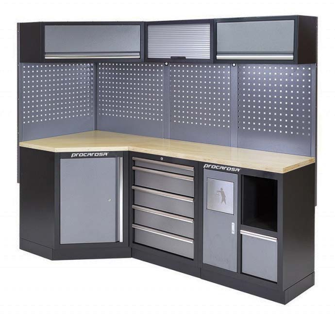 Rohová sestava dílenského nábytku Procarosa PROFI XS-VIII Pracovní deska: dřevěná