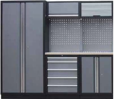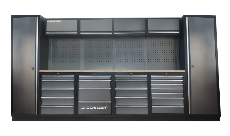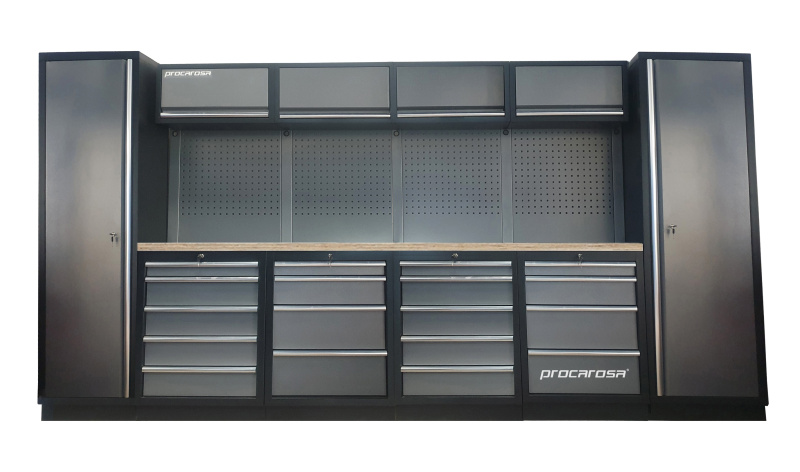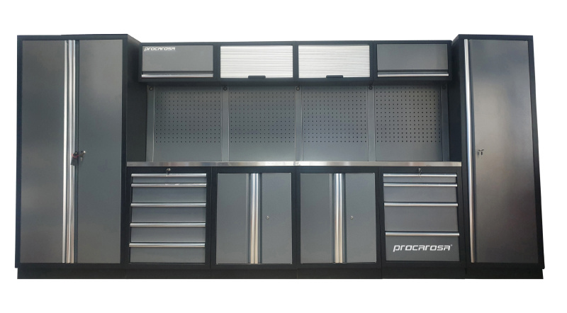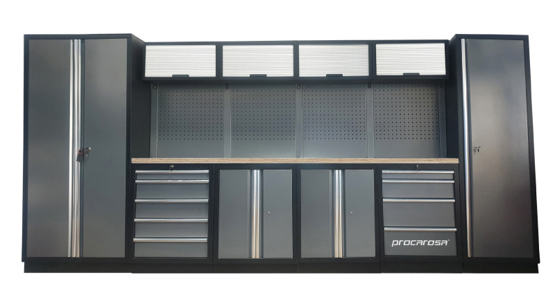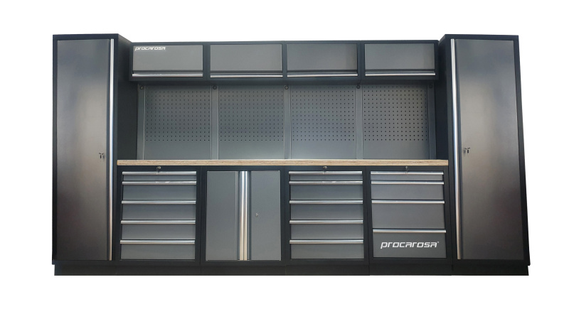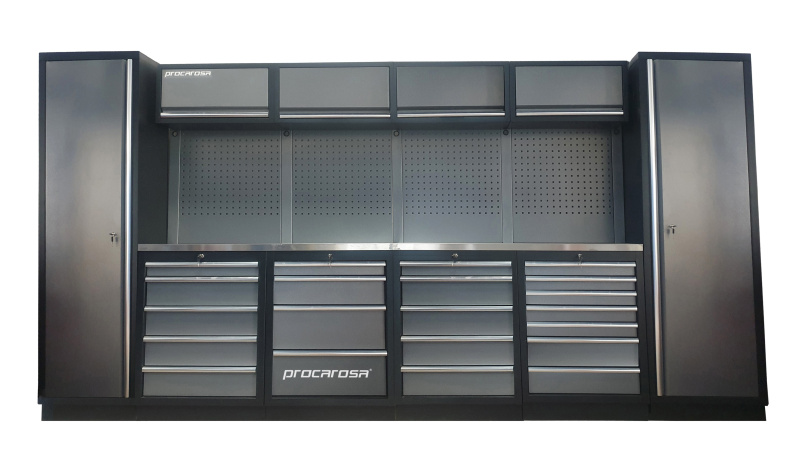 Sestava dílenského nábytku Procarosa PROFESSIONAL L-8 Pracovní deska: nerezová