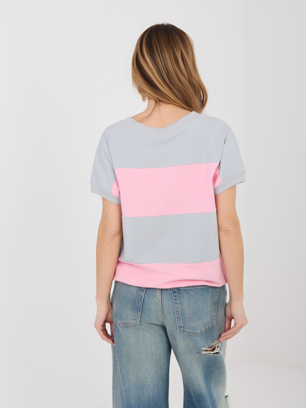 Šedo-růžová ležérní halenka z bavlny