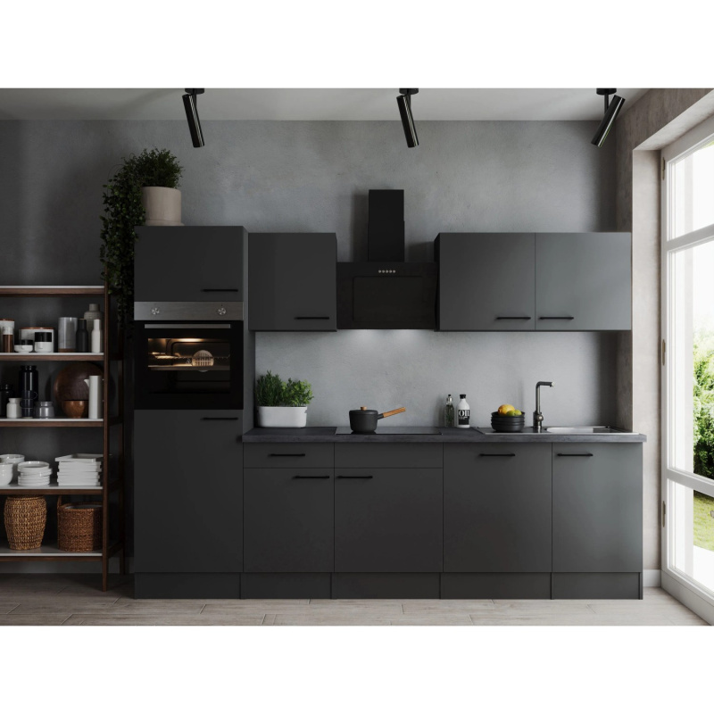 Respekta Kuchyně Oliver L černá/žula 280 cm - bez el. přístrojů