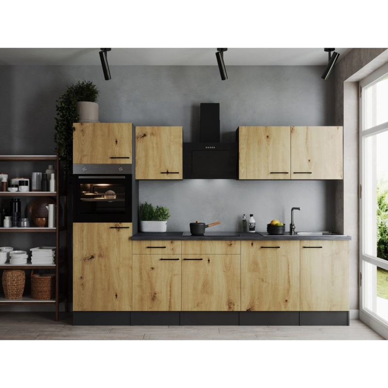 Respekta Kuchyně Oliver L dub Artisan/žula 280 cm - bez el. přístrojů