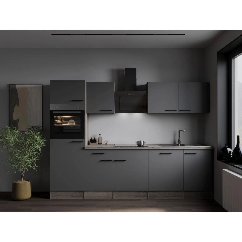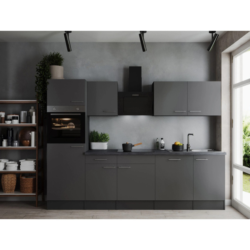 Respekta Kuchyně Oliver šedá/žula 280 cm-trouba/skl.deska/dig./myčka/led.