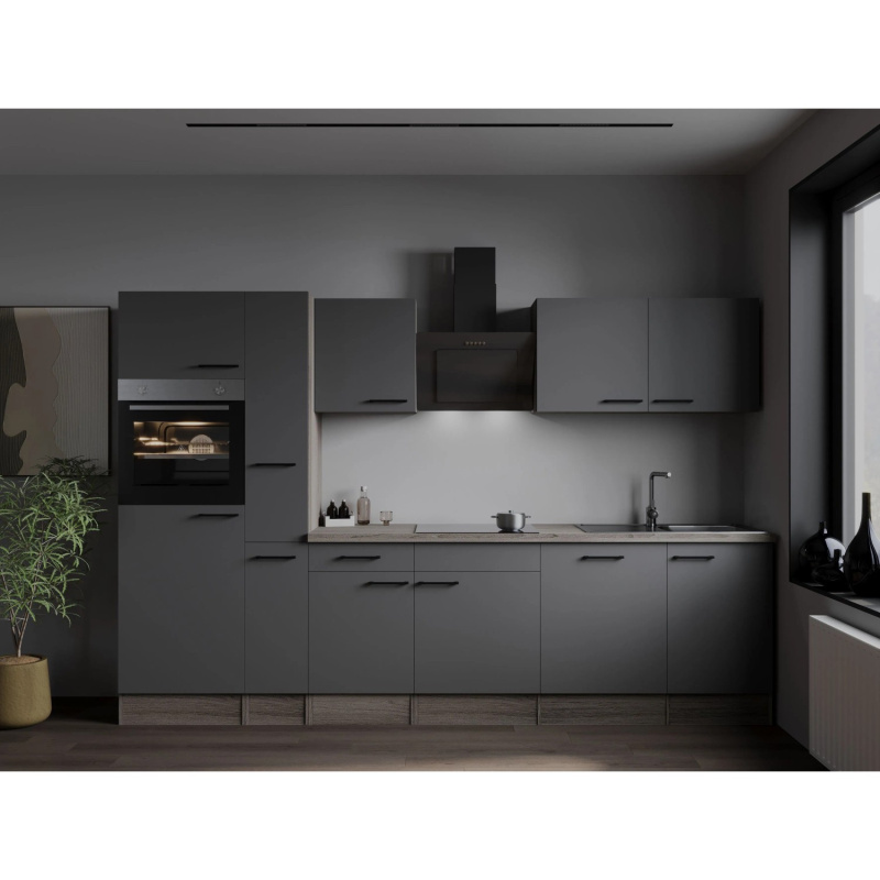 Respekta Kuchyně Oliver šedá/žula 310 cm-trouba/skl.deska/dig./myčka/led.