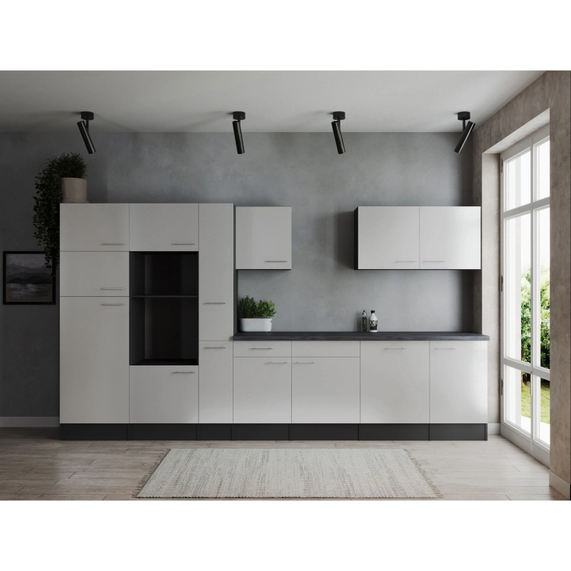 Respekta Kuchyně Oliver bílá/žula 310 cm-trouba/skl.deska/dig./myčka/led.