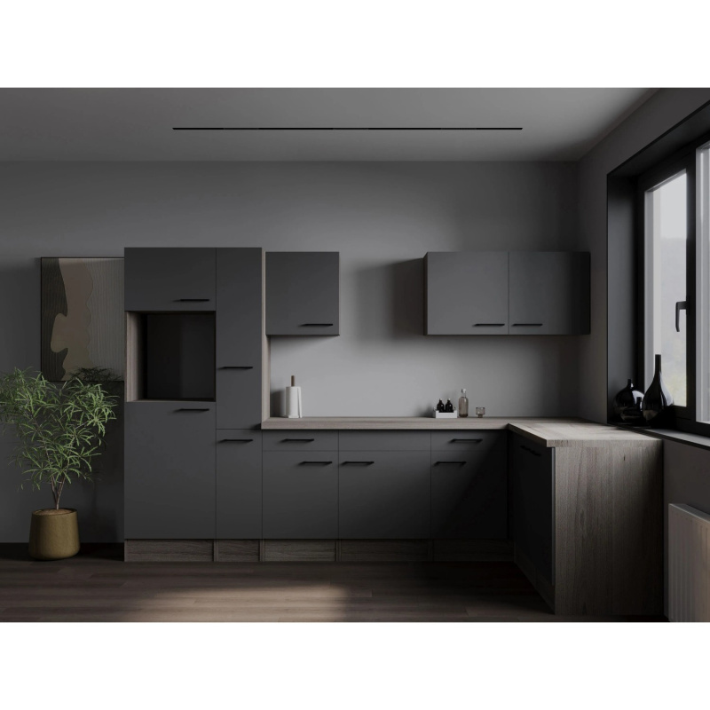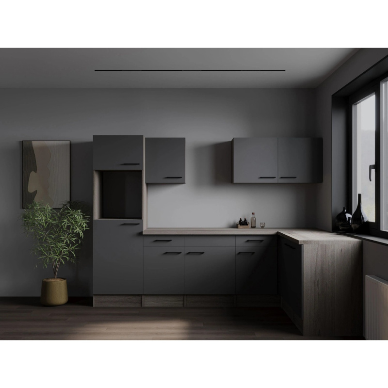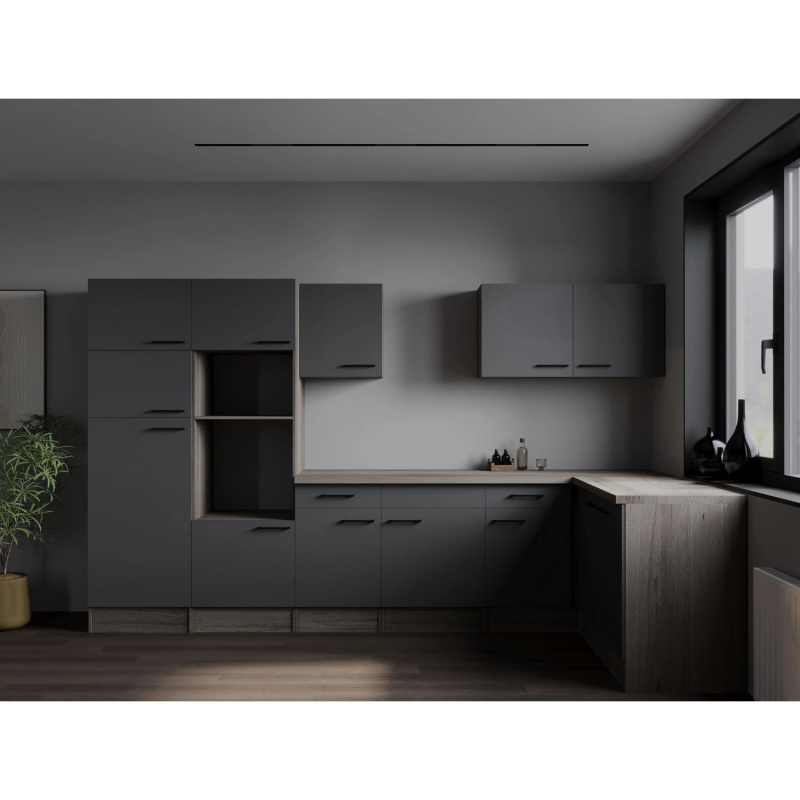 Respekta Kuchyně Oliver L dub Artisan+šedá matná/žula 310 cm - bez el. přístrojů
