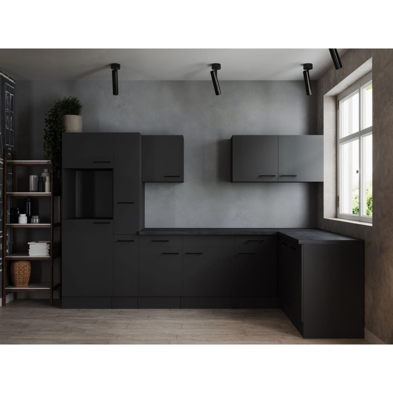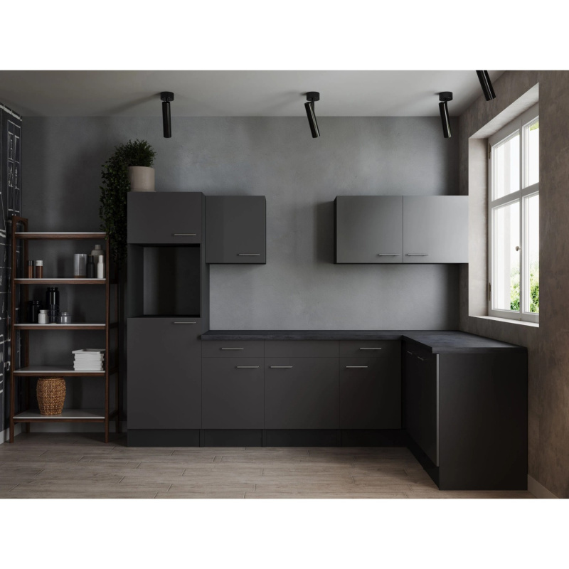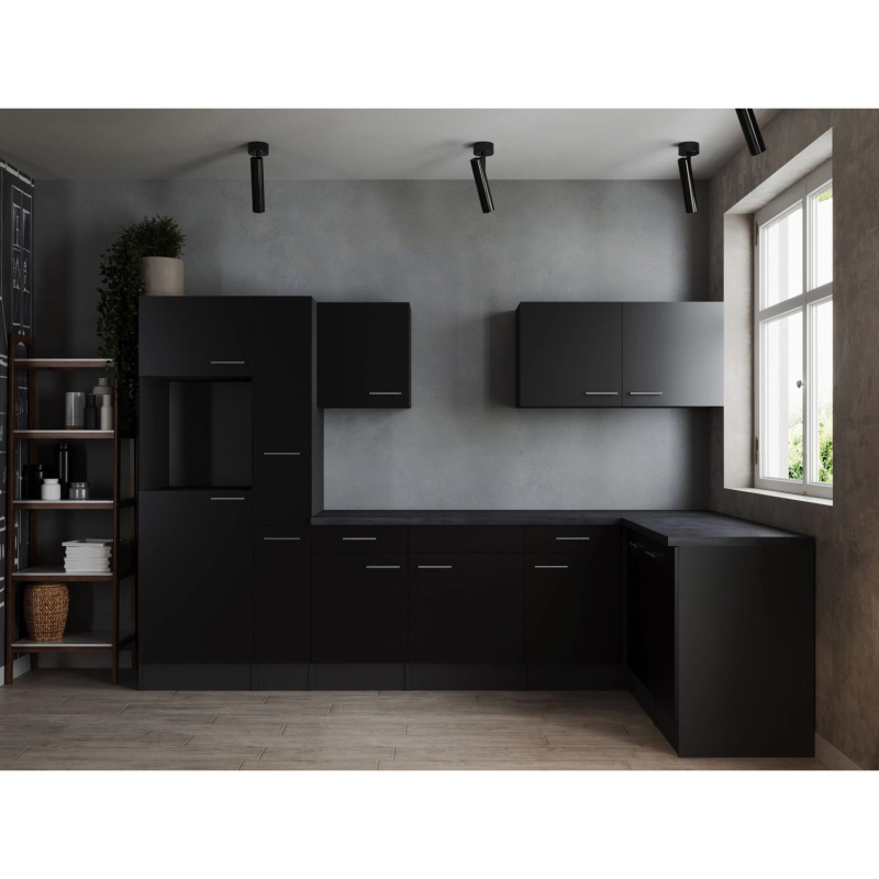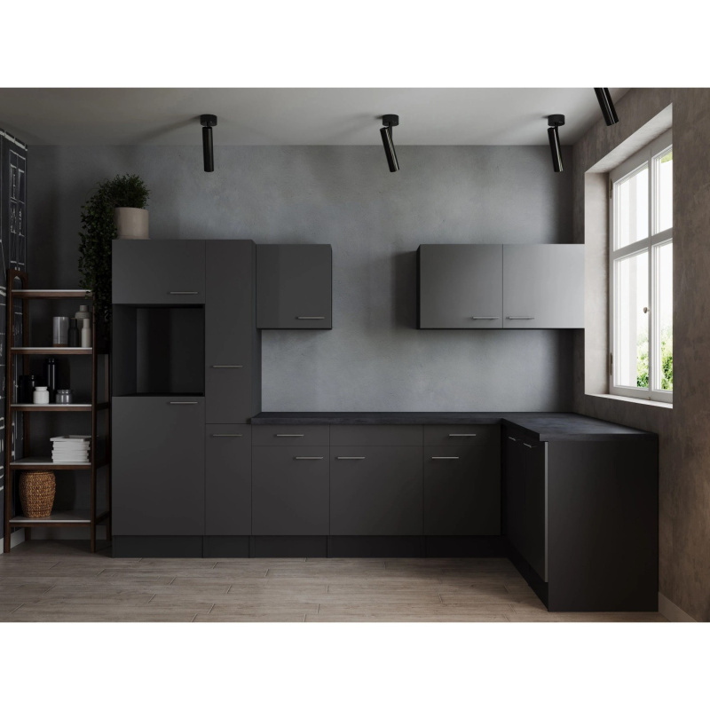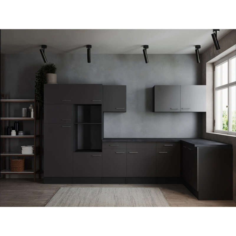 Respekta Kuchyně Oliver L černá/žula 310 cm - bez el. přístrojů