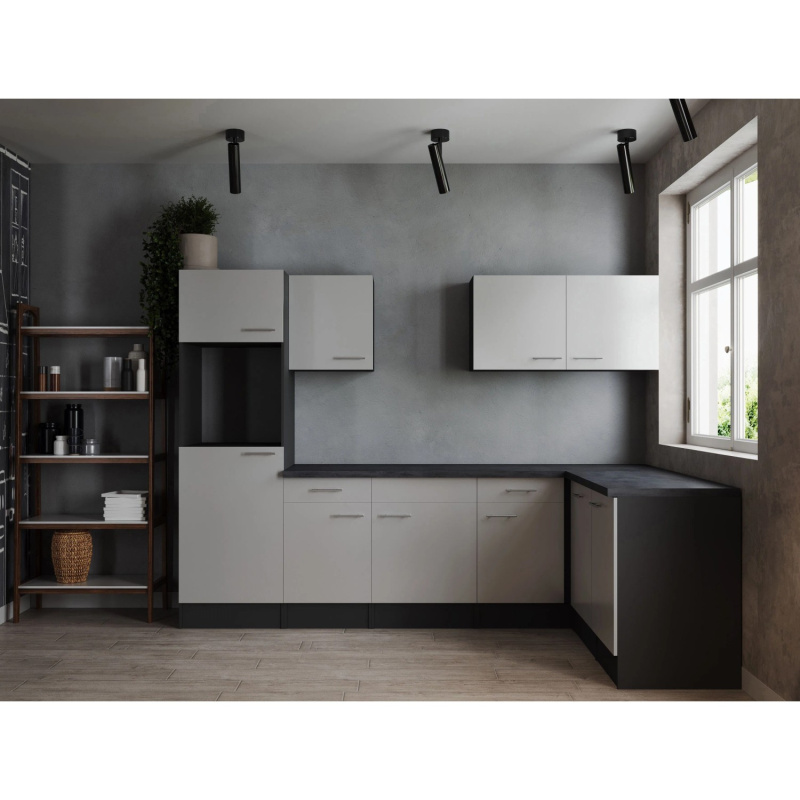 Respekta Kuchyně Oliver L šedá matná/žula 310 cm - bez el. přístrojů